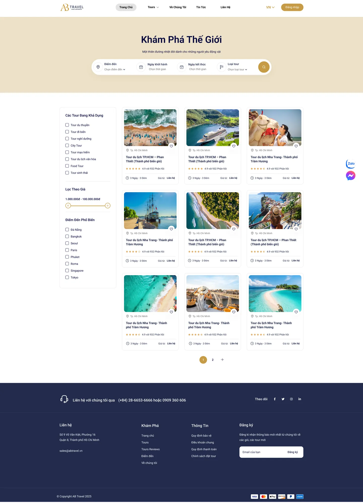 | Travel | /vi/tours/ | Tour listings, filters, search |