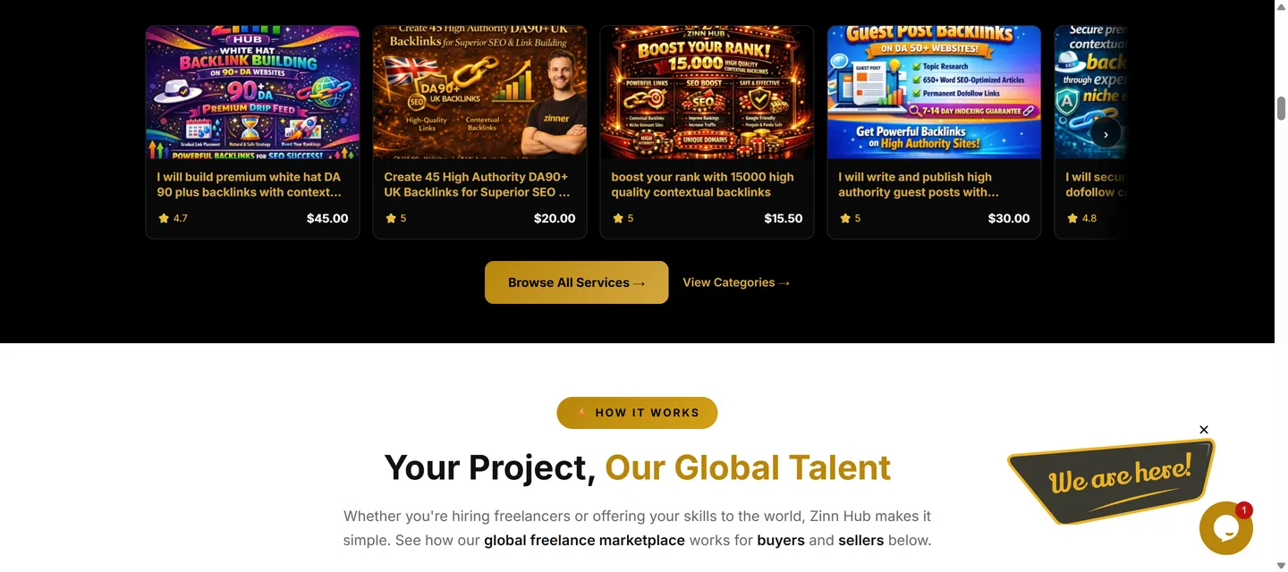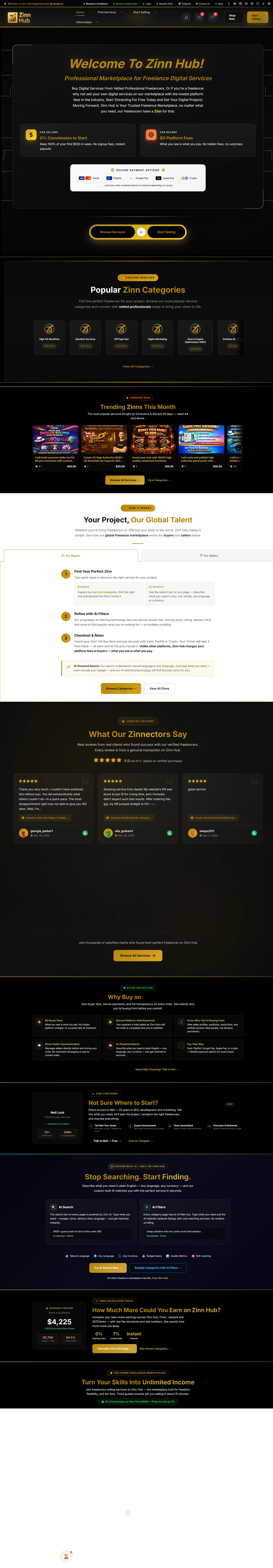Zinn Hub is a digital services marketplace from vetted freelancers. SEO, web design, content writing & more. 0% commission to start, instant payouts, accepts cards & crypto.